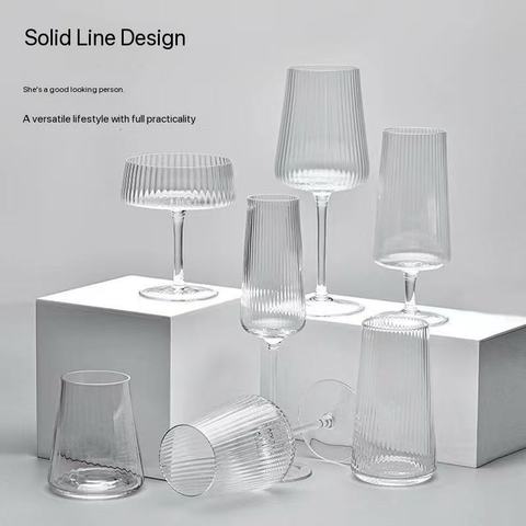Copa de vino acanalada moderna transparente francesa con rayas verticales nuevo estilo personalizado para ventas
